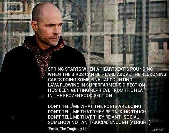 #courageforgord #spring #internationalpoetsday #lyrics #thetragicallyhip #poets #donttellmewhathepoetsaredoing #poetryisnecessary #gorddownie #canadianmusic #nationaltreasure #supportyourlocalpoet #poeticchampionscompose