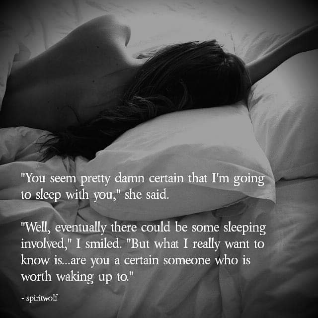 “Well, eventually there could be some sleeping involved”, I smiled. “But what I really want to know is… are you a certain someone who is worth waking up to.”